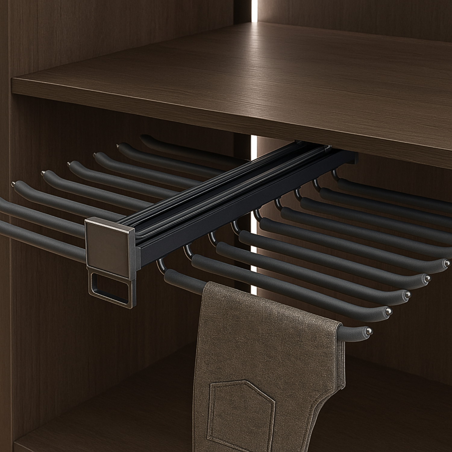 Pantalonero deslizante doble premium, ideal para organizar pantalones de forma ordenada y accesible.